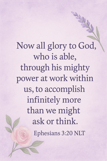 ‘Now all glory to God, who is able, through his mighty power at work within us, to accomplish infinitely more than we might ask or think.’